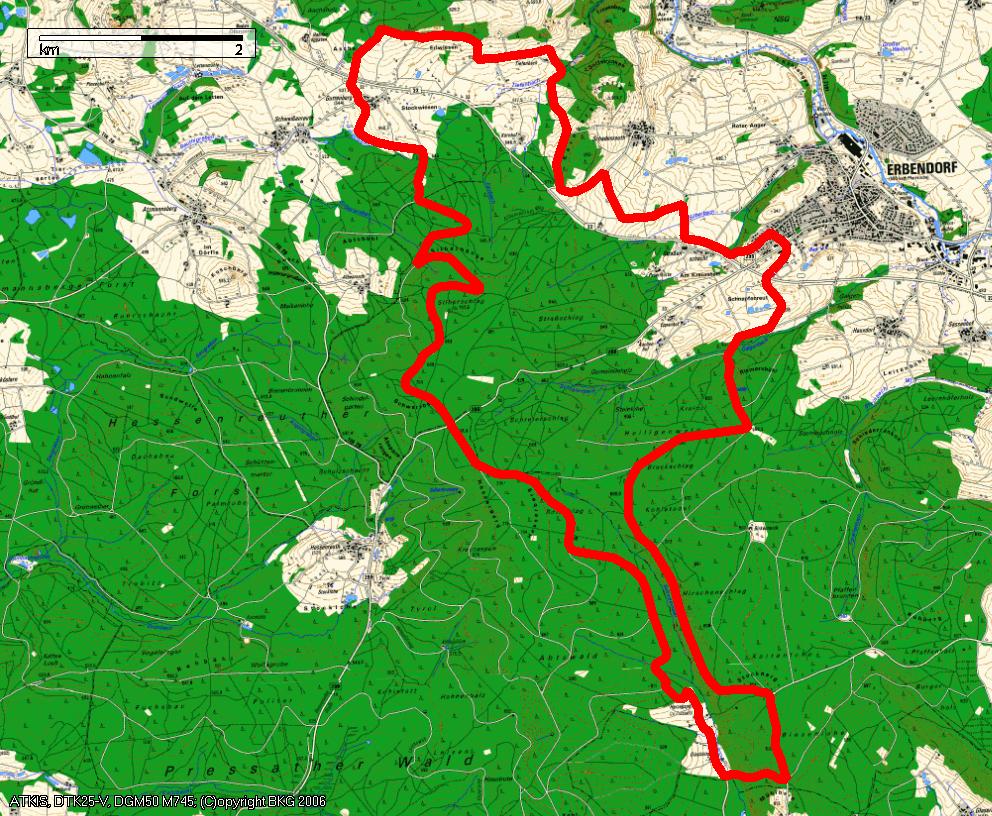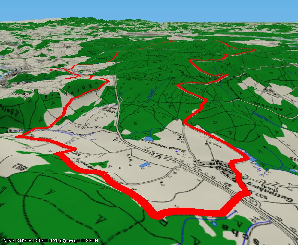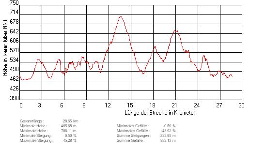 Route: Vom Parkplatz bergauf durch das Wohngebiet und am Ortsende auf Teer bergab. Gerade über die Kreuzung und auf Schotter weiter über eine Brücke bis zur nächsten Kreuzung. Dort links immer gerade halten bis zur Teerstraße. Dieser links folgen und gleich wieder rechts leicht bergab. An der Abzweigung links bergab immer dem Hauptweg folgen, über eine Brücke bergauf zur nächsten Teerstraße. Dieser links folgen, dann rechts auf Teer bergauf. Der Weg wird zum Schotterweg und dann wieder geteert. Nach dem Queren der B22 gleich rechts halten und im Wald stets dem Hauptweg (wird ab dem Schiessplatz sehr steil) folgen bis dieser auf eine Forstautobahn trifft. Dieser links folgen. An einer Abzweigung links halten und immer der Forstautobahn folgen, bis man oben die B299 quert. Weiter gerade und an der Abzweigung links. Immer dem Hauptweg folgen. Nach einem Weiher die 2. links in eine Pfad abzweigen. Rechts zum Waldrand und diesem folgen, bis man wieder den Hauptpfad erreicht. Dieser wird zur Teerstraße. Nach der Glashütte links bergauf. Oben wieder links weiter bergauf. An der Kreuzung scharf links auf Schotter wieder begrab. immer dem Hauptweg folgen. An der Einmündung rechts bergab. Diesem Weg immer folgen bis er am Parkplatz Kirchenwald wieder zum geteerten Weg wird. Rechts dann noch mal links und nach der Unterquerung der B22 ist man am Parkplatz zurück.