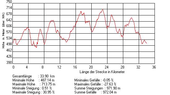 Charakteristik: Das ist der Weg für einen schwülen Sommernachmittag, an dem man nicht daran zweifelt ob es noch gewittert sondern man sich nur noch nicht ganz sicher ist wann. Von kaum einem Punkt braucht man länger als 10 Minuten zurück zum Parkplatz. Dabei zeigt der Weg, das es auch in unmittelbarer Ortsnähe durchaus ansprechende und fordernde Wege gibt. Hier sind etliche Pfade und Trails durch vorwiegend Schotterstrassen verbunden. Und insgesamt fast 1000 hm sprechen auch eine deutlich Sprache. Einziger Nachteil ist die fast nur im Wald verlaufende Strecke mit wenig landschaftlichen Höhepunkten.