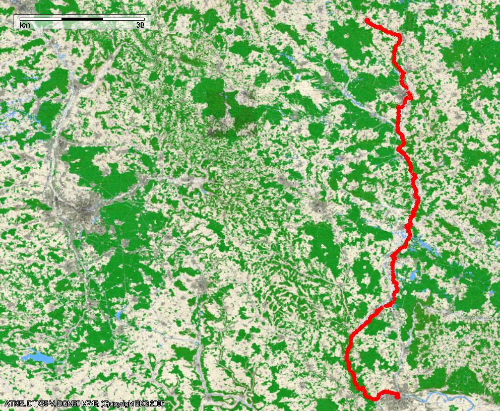 Anmerkungen: Rückfahrt mit der Vogtlandbahn am Regensburg Hbf. bis Reuth und anschliessend Rückfahrt auf dem Kurweg bis zum Parkplatz in Route nicht berücksichtigt. Nicht unbedingt bei Südwind fahren. Der wird im Naabtal schön kanalisiert.