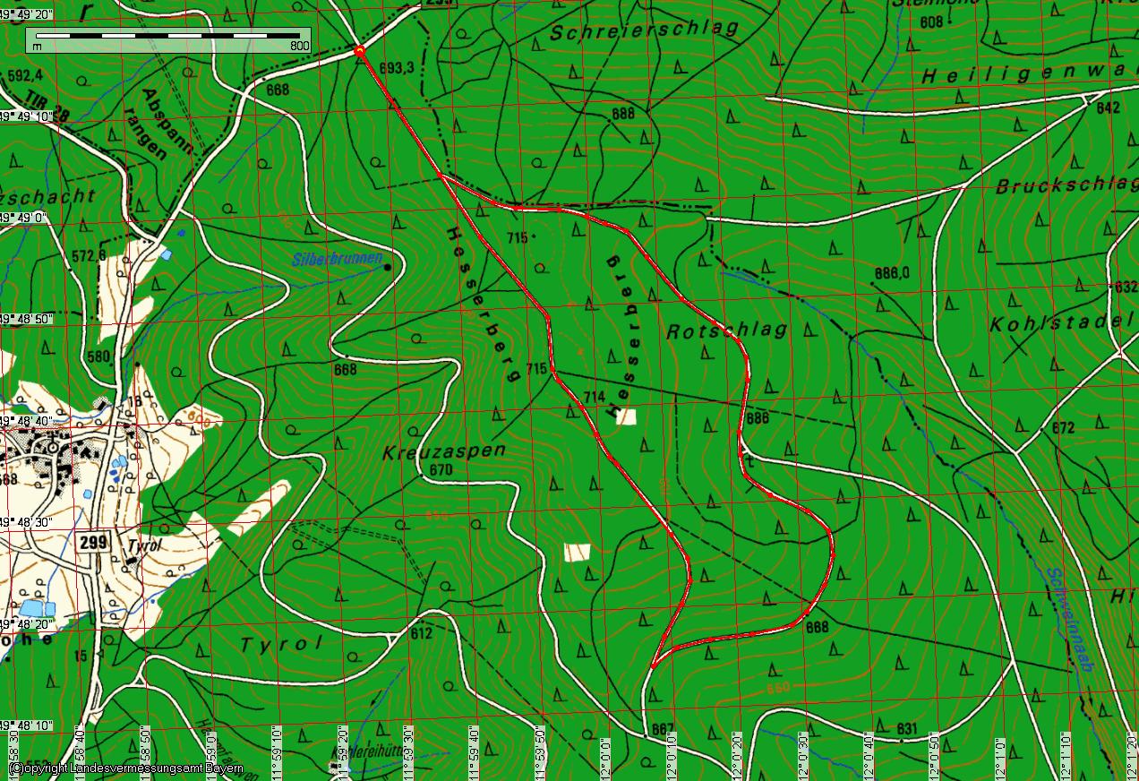 Start/Anfahrt: Parkplatz (“am Oschpa”) auf der “Hessenreuther Platte” an der B299 zwischen Erbendorf und Hessenreuth.