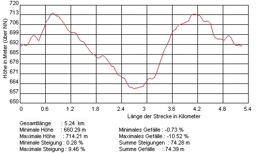 Route: Vom Parkplatz ostwärts zunächst gerade, dann den Berg hoch und oben an der ersten Kreuzung links halten. Nun immer auf dem Hauptweg bleiben und die Abzweigung nach links nicht beachten. An der Weggabelung an der Unterstellhütte rechts den Berg hoch. Immer auf dem Hauptweg bleibend kommt man zurück zum Parkplatz.